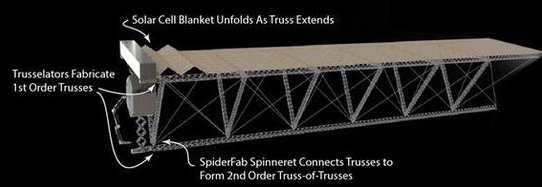 但若能在軌道上直接建造飛船構件,通過火箭升空的就只需蜘蛛機器人以及原始建材,即通過較小、較便宜的運載火箭實現(xiàn)緊湊的運輸,進而在太空中直接打造出比原來大數(shù)十倍至數(shù)百倍的太陽能電池板或天線,從而讓各種太空任務實現(xiàn)更高的功率、帶寬、分辨率和靈敏度。