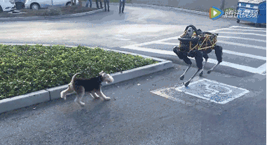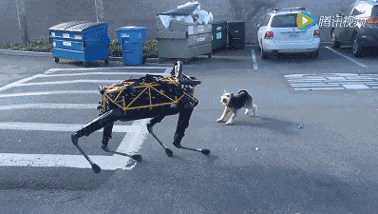 可惜,小狗Alex根本不把機器狗Spot當成自己的同類,一發(fā)現(xiàn)它時候就沖上去狂吠,無論機器狗是與它正面相對,還是試圖離開,小狗Alex都不依不饒。最后機器狗只能“服軟”趴下。