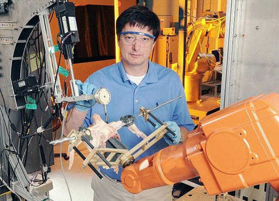 據(jù)媒體報(bào)道,美國喬治亞州研究所(GTRI)科學(xué)家最新研制一款機(jī)器人,使用先進(jìn)的圖像技術(shù),機(jī)械切割手臂能夠自動(dòng)地精確的完成切割雞肉的工作,這將徹底改變家禽市場(chǎng)。