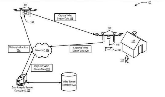 該專利名為“來(lái)自無(wú)人機(jī)視頻流中的觸發(fā)媒介”,描述了一種送貨無(wú)人機(jī)可以掃描客戶房子的系統(tǒng),隨后無(wú)人機(jī)能將這些信息發(fā)送回亞馬遜。然后,圖像識(shí)別算法將分析這些信息,以確定客戶可能感興趣的其他產(chǎn)品,然后通過(guò)電子郵件或其他有針對(duì)性的廣告為用戶提供建議。
