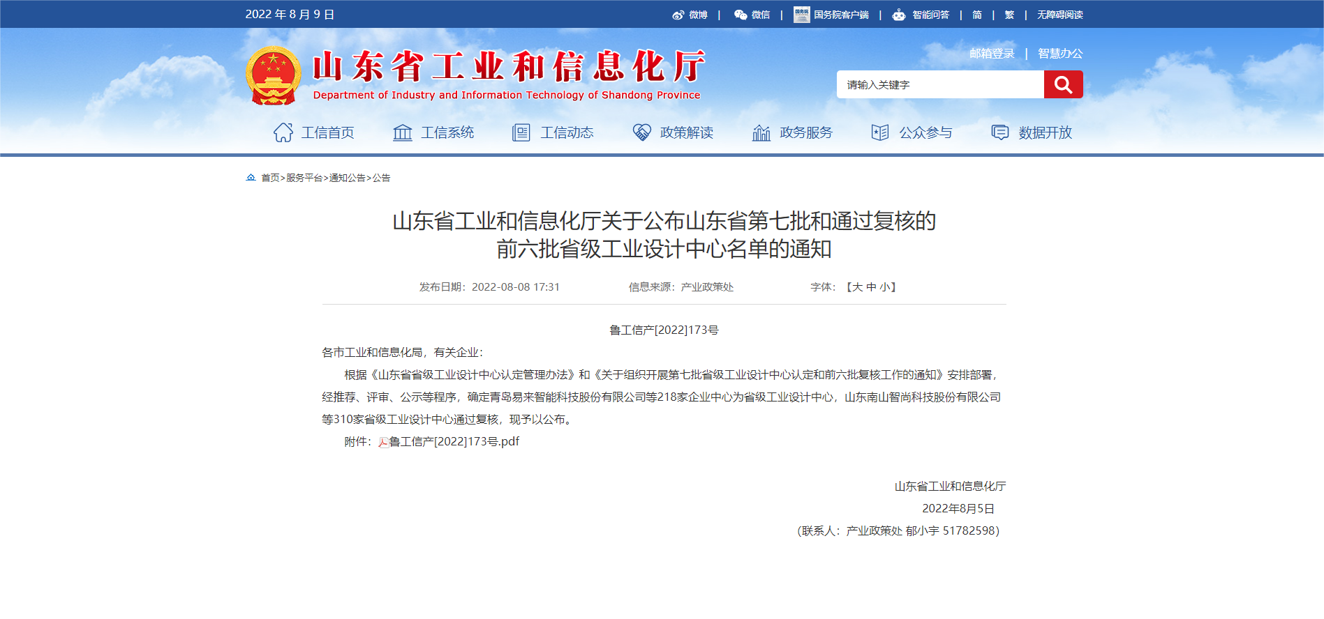 每兩年認(rèn)定一次的省級工業(yè)設(shè)計中心是經(jīng)山東省工業(yè)和信息化廳評選出的工業(yè)設(shè)計創(chuàng)新能力較強(qiáng)、特色鮮明、管理規(guī)范、業(yè)績顯著、設(shè)計水平領(lǐng)先的企業(yè)工業(yè)設(shè)計中心、工業(yè)設(shè)計企業(yè)(機(jī)構(gòu))或工業(yè)設(shè)計基地。此次國興智能上榜名單,對國興智能在工業(yè)設(shè)計創(chuàng)新方面的充分肯定。