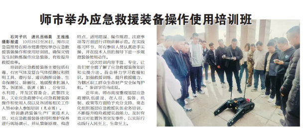 近日,國興智能“地震搜索機器人PS600”登上石河子日報,石河子是兵團應(yīng)急局八師駐地。此次批量交付,由國興智能專業(yè)交付團隊負(fù)責(zé),對裝備操作、使用及應(yīng)急處理進行了詳細(xì)說明。